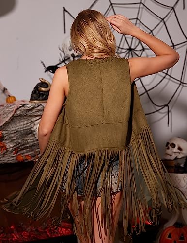 HOTOUCH Women Fringe Vest 70s Hippie Costume Faux Suede Sleeveless Tassels Cardigan Cowgirl Western Tops
