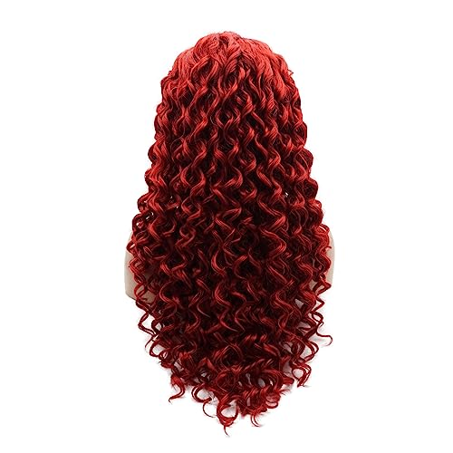 Specification: Lushy Stylish Long Curly Red Wig Heavy Density Heat Resistant Synthetic Lace Front Wig