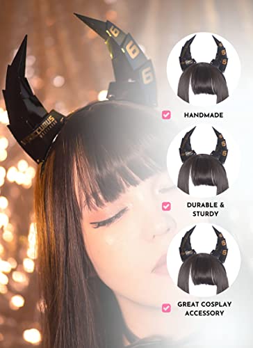 MOEFLAVOR Cyber Succubus Headband | Devil Horns Kawaii Anime Cyberpunk Head Band Matches Any Halloween and Cosplay Costume