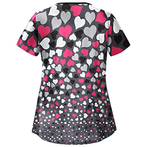 Scrub Tops for Women Medical Workwear Stretch Fashion Funny Printed Plus Size Short Sleeve Nursing Uniform Scrub Tops