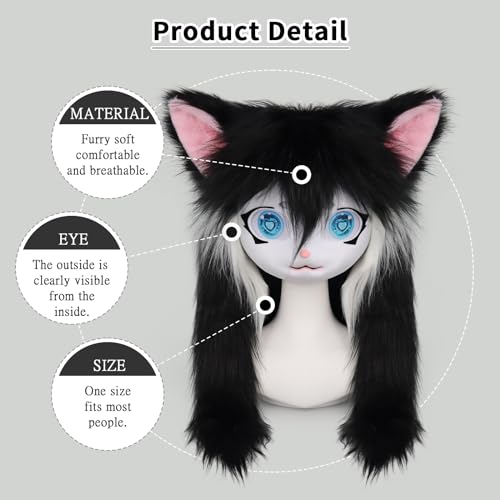 Specification: SMILETERNIT Animal Head Cat Fursuit Cut Mask Halloween Masquerade Cosplay Costume Props