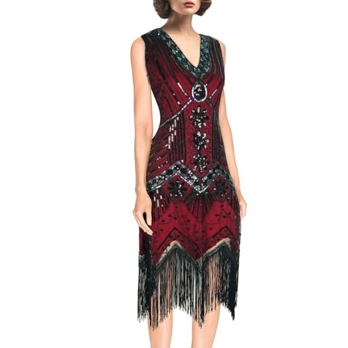 Specification: Women’s 1920s Flapper Dress Vintage Lace Fringed Gatsby Cocktail Dress with 20s Accessories Set